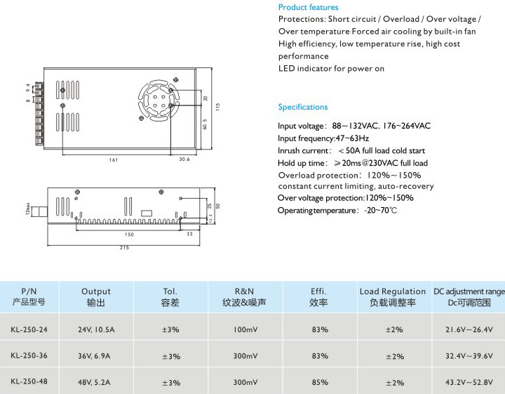 過(guò)電壓保護(hù)/過(guò)電流保護(hù)/過(guò)溫保護(hù)內(nèi)置風(fēng)扇冷卻